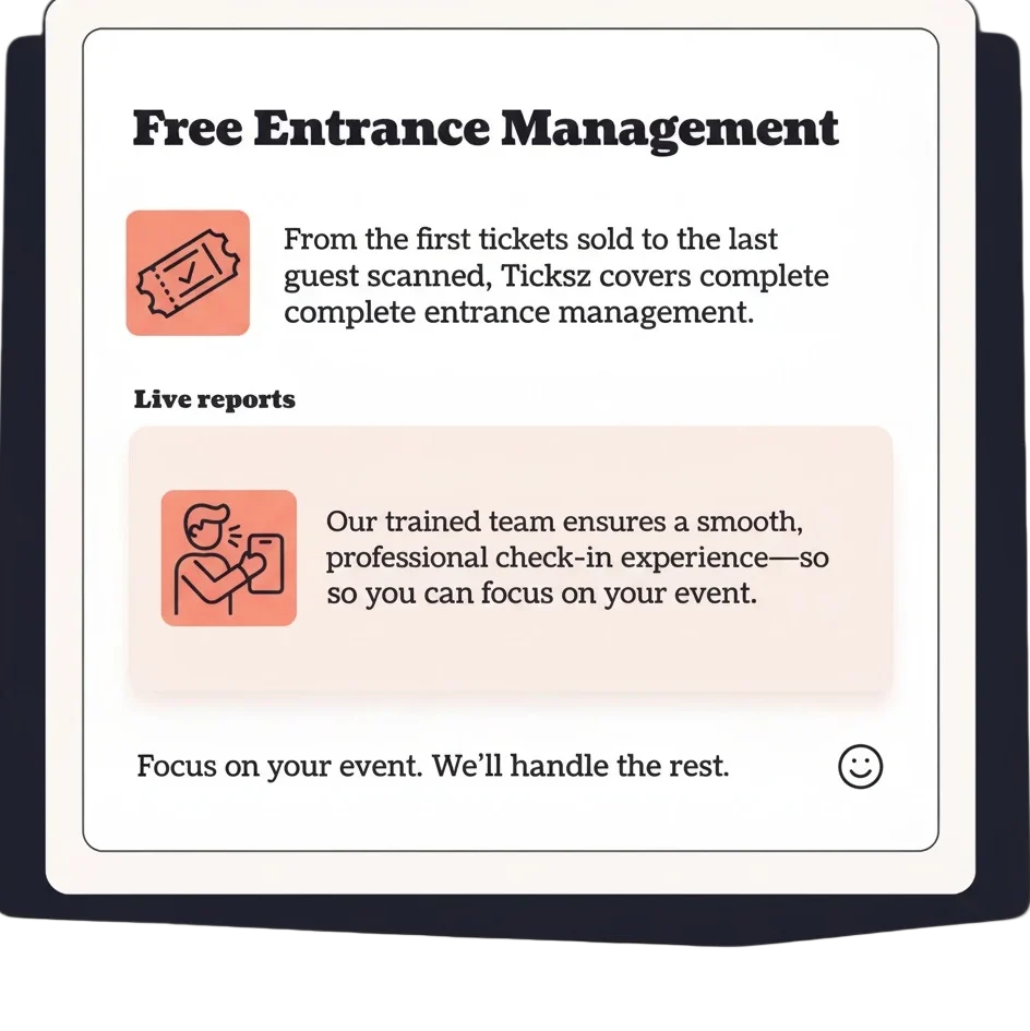 From the first ticket sold to the last guest scanned, Ticksz takes care of every detail of your event’s entry process. Our professional team ensures a seamless, stress-free check-in experience for both you and your guests.